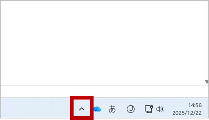 画面右下のタスクバーにある「∧(隠れているインジケーター)」をクリック。