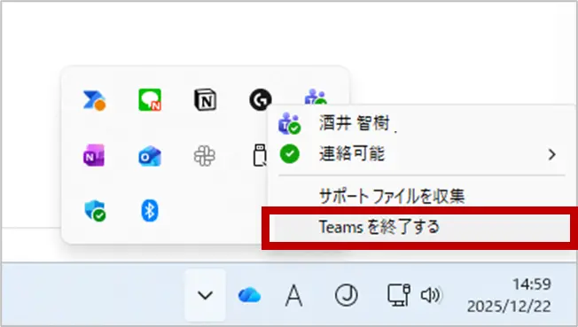 Teamsを完全終了します。(ステップ1の手順を参照)