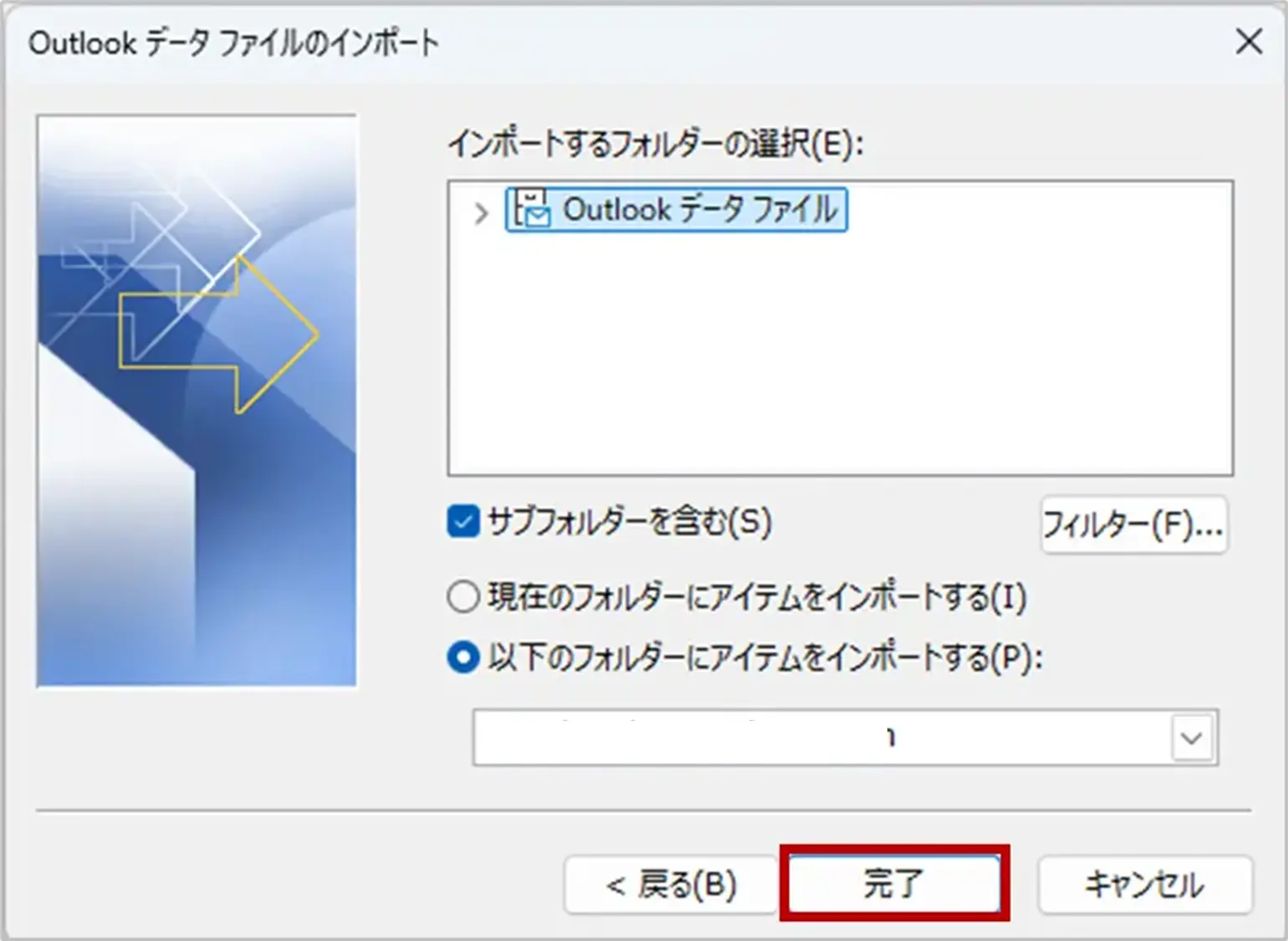 【ステップ2】従来のOutlookで、Exchange Onlineアカウントにデータをインポートする手順