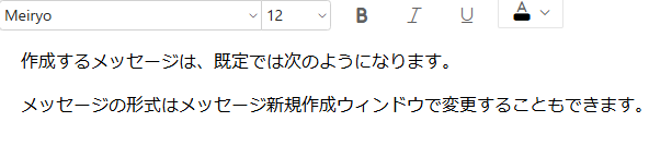 これで、次回から「新しいメール」を作成する際や「返信」をする際に、設定したフォントが自動的に適用されます。