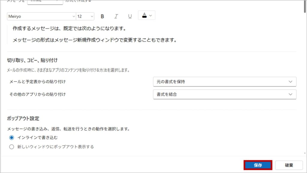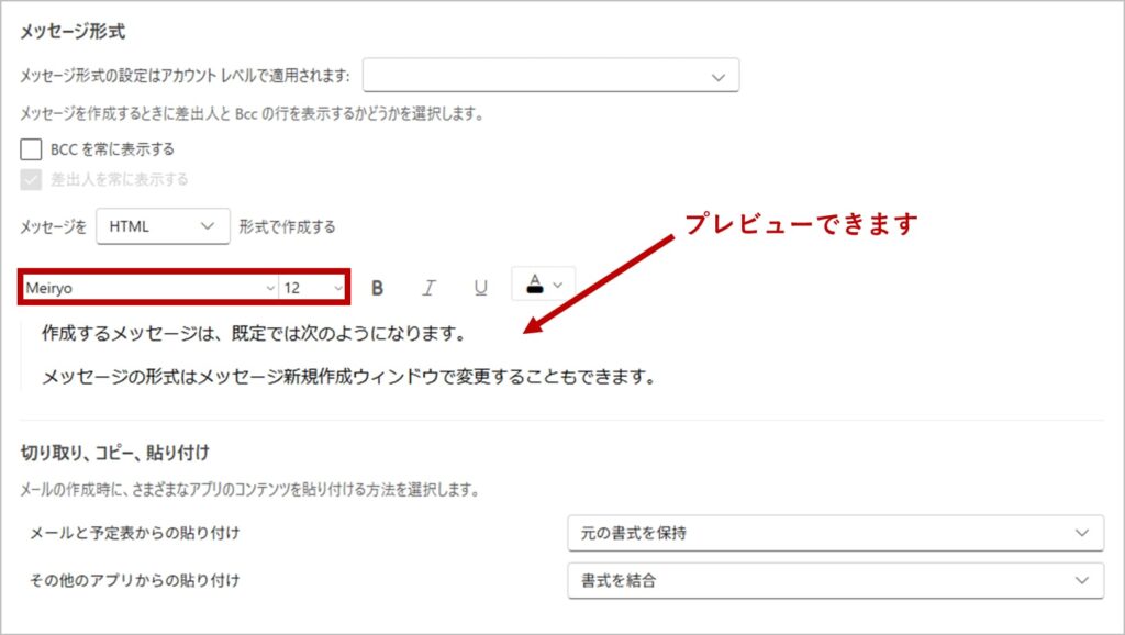 【手順】新しいOutlookでデフォルトのフォントを変更する