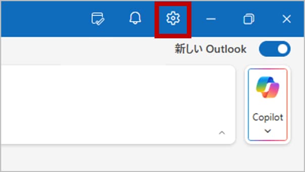 新しいOutlookを開き、画面右上にある「歯車アイコン(設定)」をクリックします。