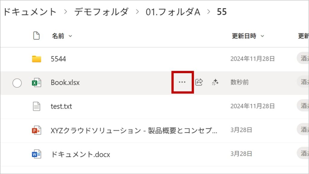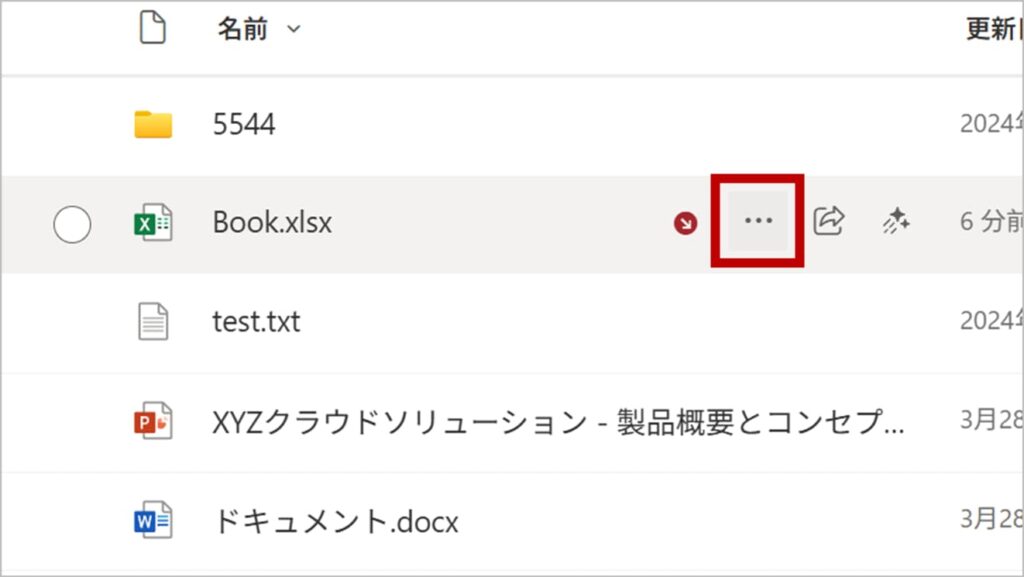 対象のファイルを右クリック、または「・・・」をクリックします。
