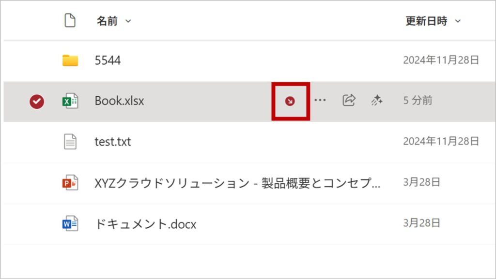 対象のファイルを右クリック、または「・・・」(アクションの表示)をクリックします。