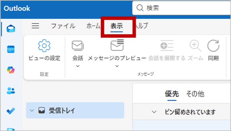 新しいOutlookの画面上部にある「表示」タブをクリックします。