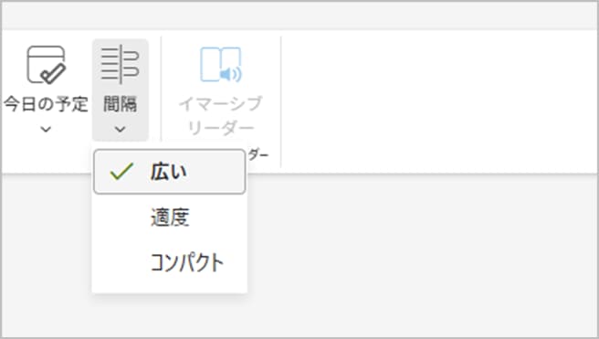 リボンメニューの中にある「密度」(または表示間隔)をクリックし、以下3つから、好みのものを選択します。