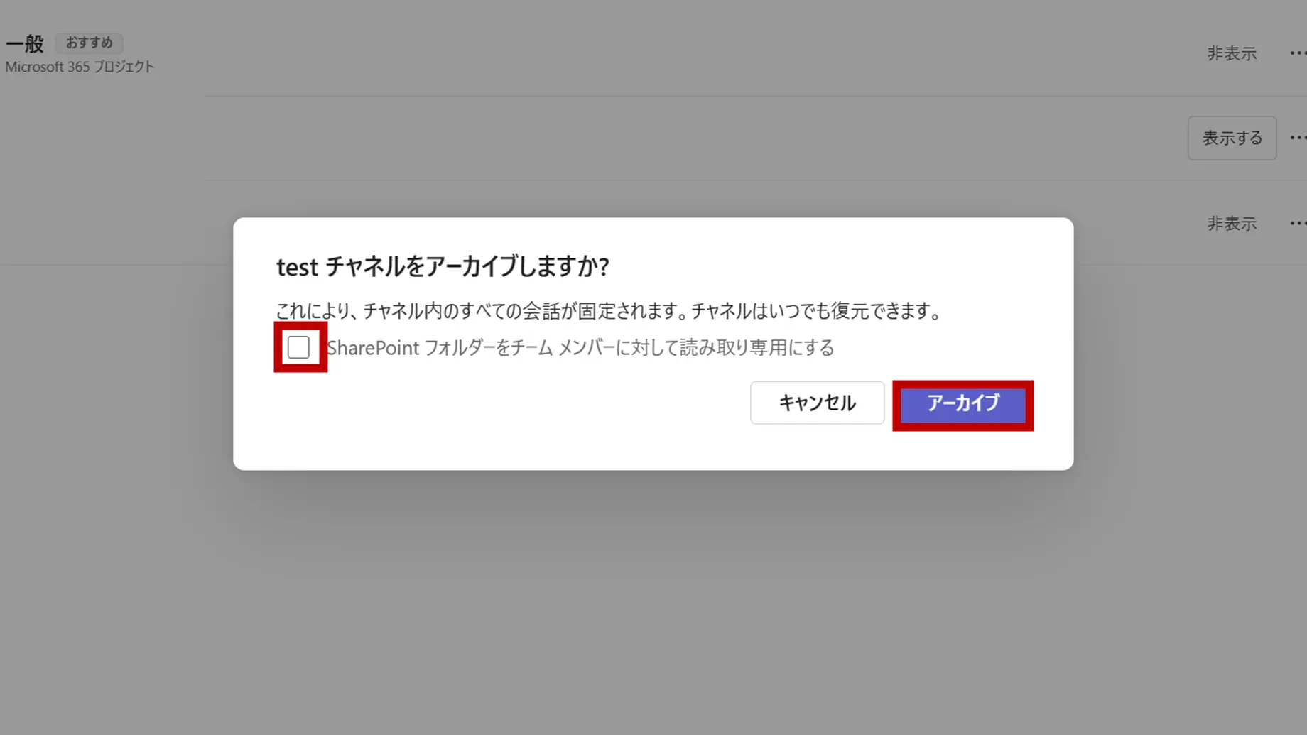 - Q「チームのアーカイブ」と「チャネルのアーカイブ」は何が違いますか?