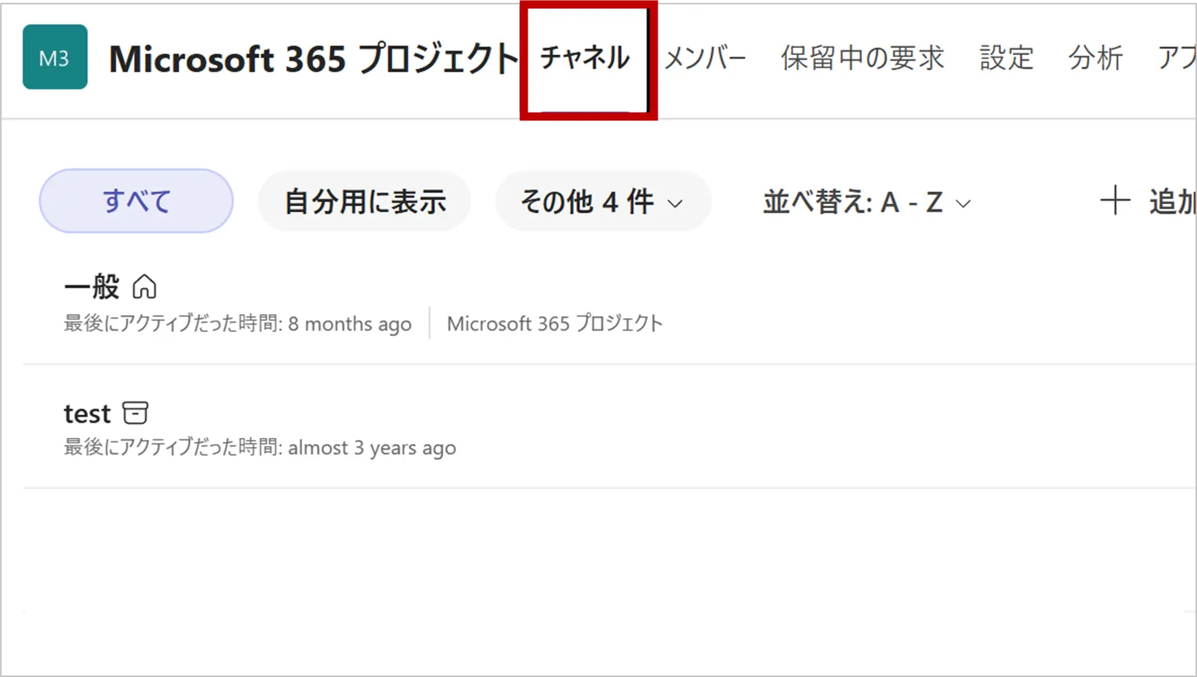 「一般」チャネルはチームの基本となる場所のため、チームそのものをアーカイブしない限り、常に表示され続けます。