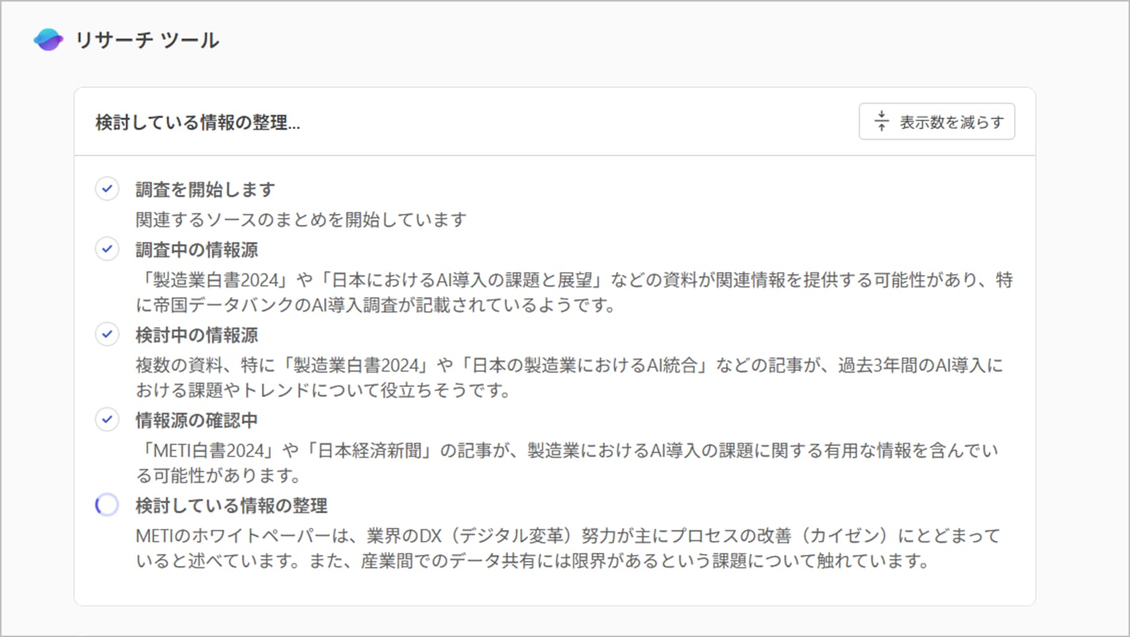 そこで注目されているのが、「Copilot Deep Research(リサーチツール)」という機能です。