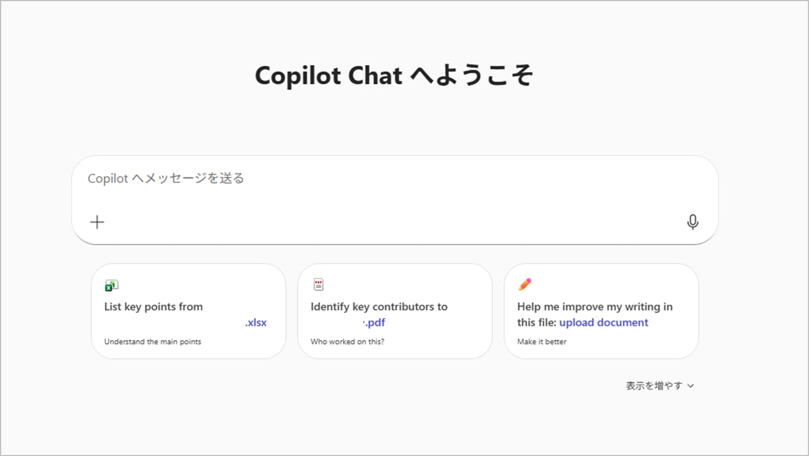 ブラウザで Copilot または Microsoft 365 ポータルを開き、Copilotの画面にアクセスします。
