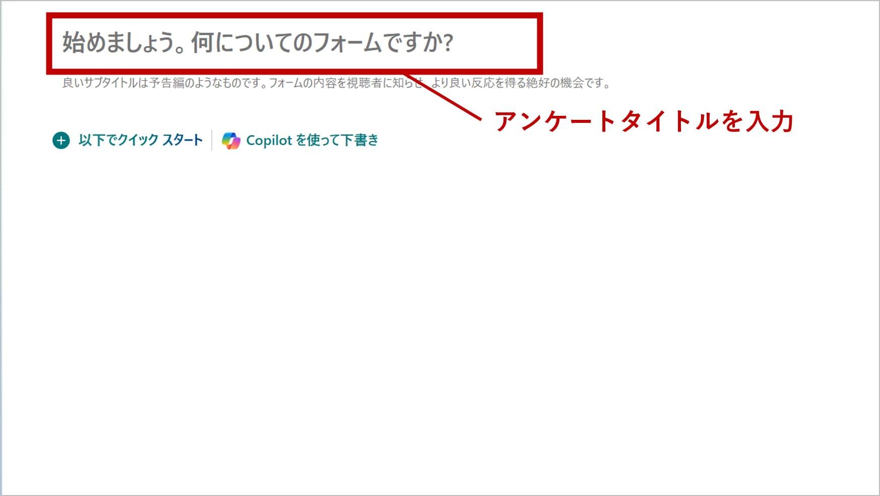 上部にアンケートのタイトル(例:社内満足度調査)を入力します。