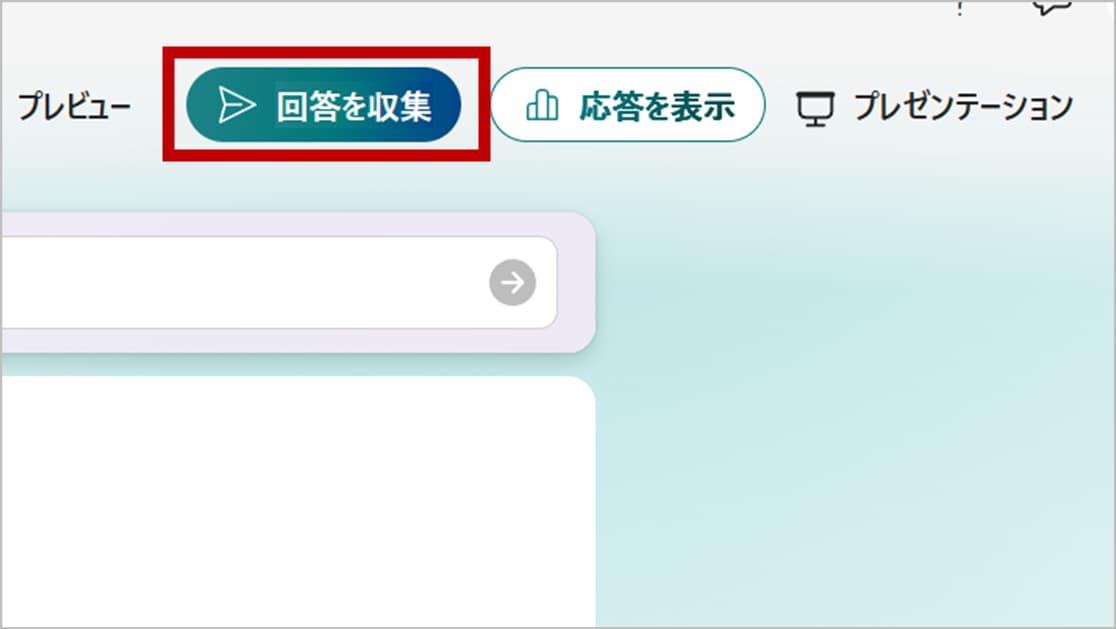画面右上にある「回答を収集」(または「送信」)ボタンをクリックします。