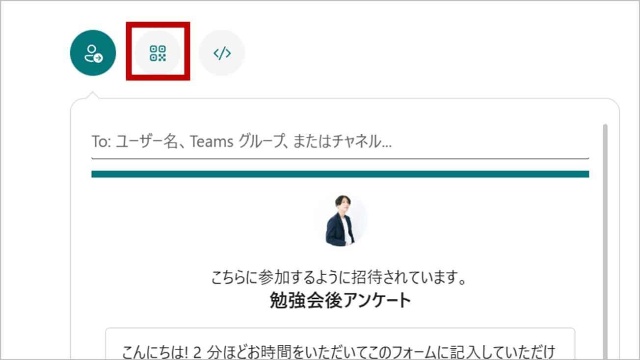 表示されたメニューの中に、QRコードのアイコン(四角い点々のマーク)があるのでクリックします。