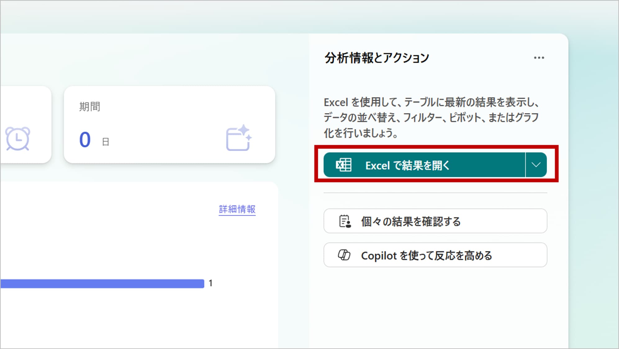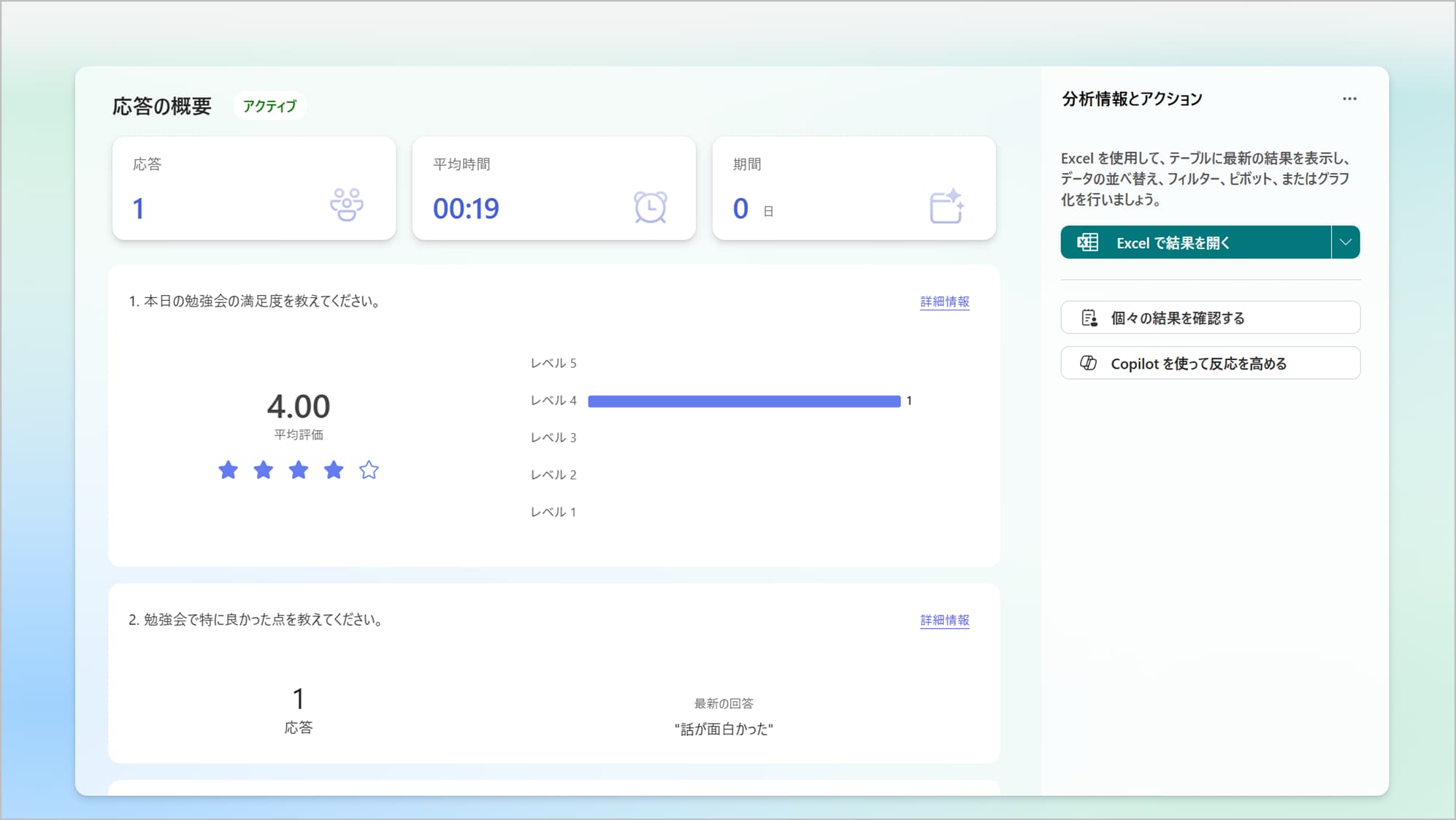 「Excel で開く」をクリックすると、すべての回答データをExcelファイルとしてダウンロードできます。