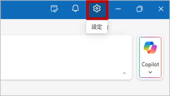 Outlook画面右上の 歯車アイコン(設定) をクリックします。