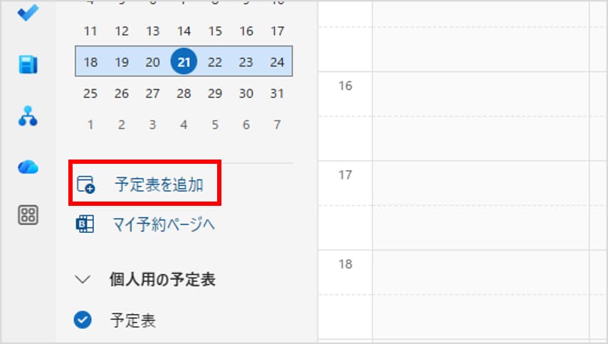 手順2:「予定表を追加」をクリックする