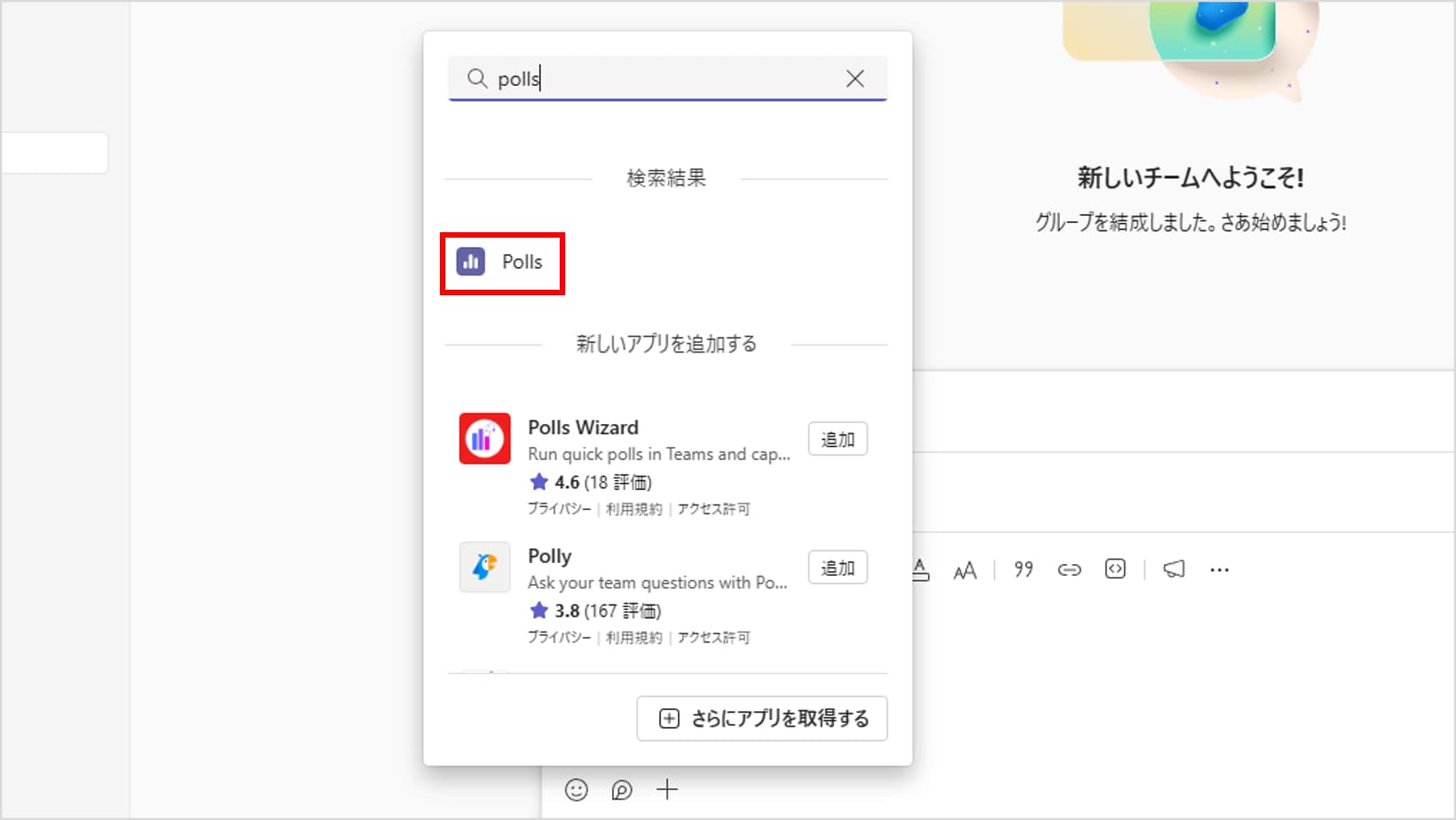 ※見当たらない場合は「+」を押して検索窓に「Polls」と入力してください。