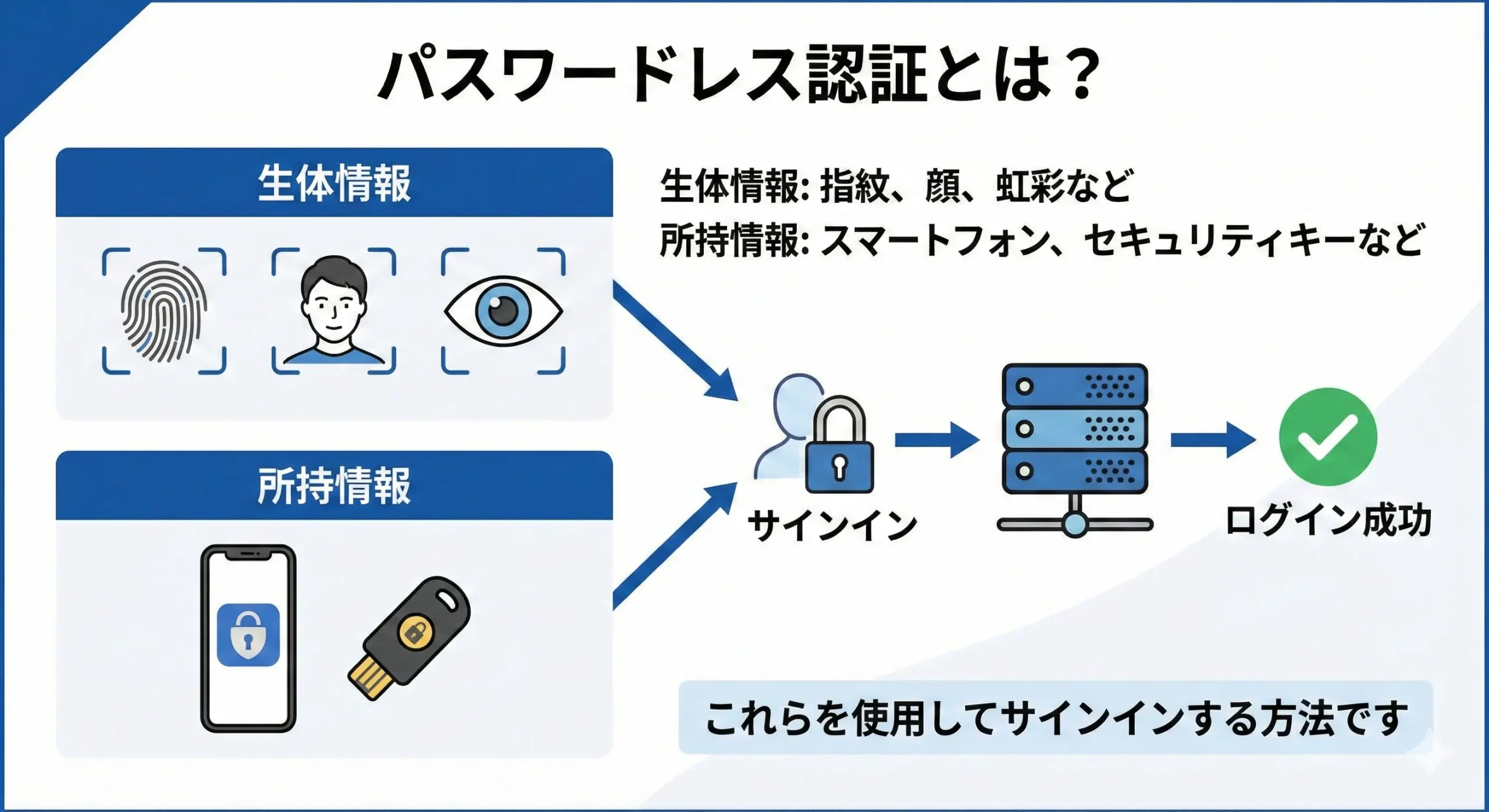 - 所持情報: スマートフォン、セキュリティキーなど(あなたが持っているもの)