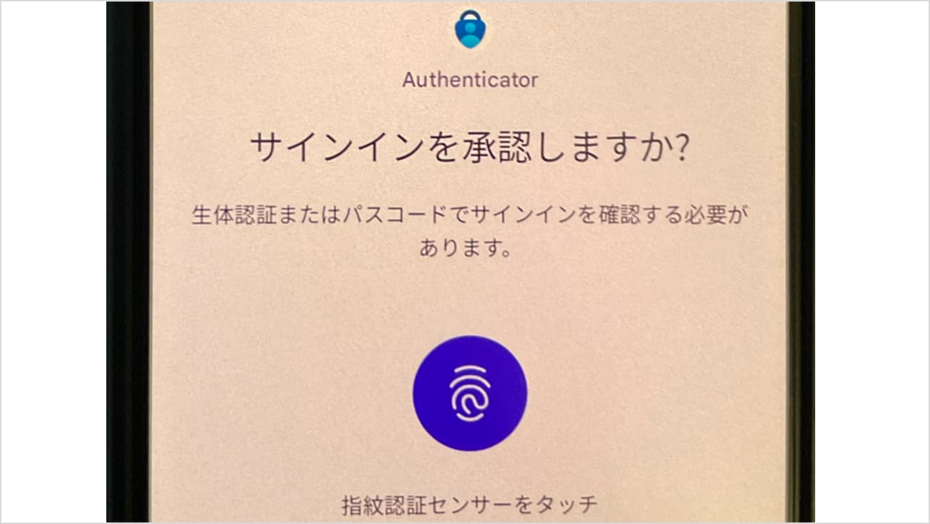 スマホにインストールしたMicrosoftの認証アプリを使います。