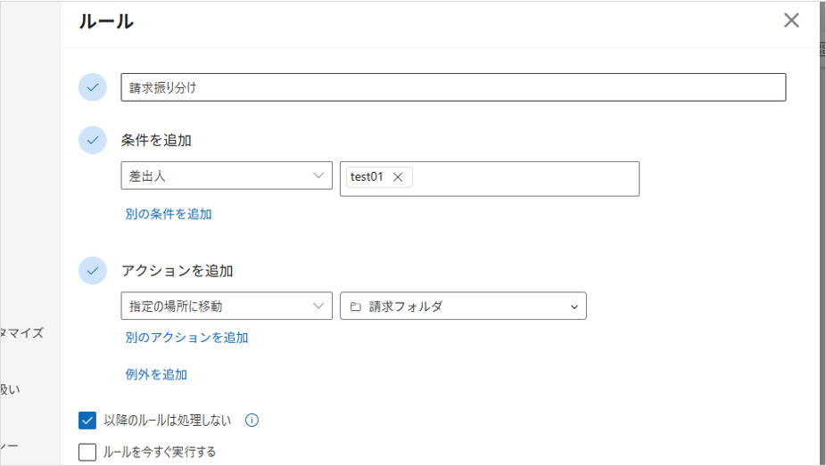 - ルールの名前: わかりやすい名前(例:請求書振り分け)