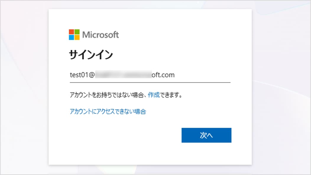 まず、ブラウザで https://outlook.office.com/ にアクセスし、普段使用している自分のアカウントでログインします。