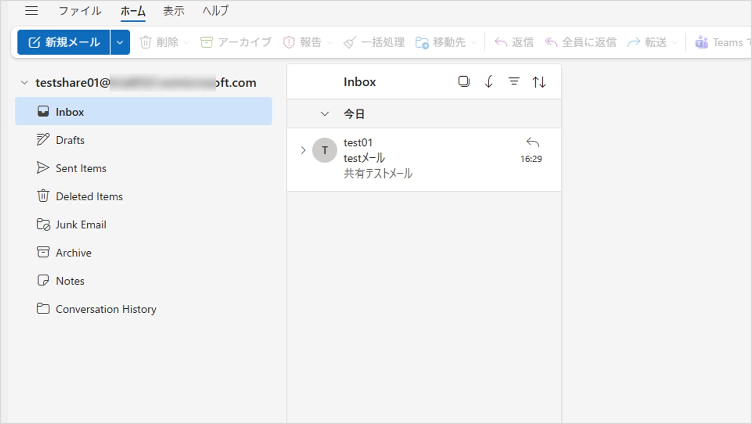 ここからは、新しいタブ(共有メールボックスの画面)で操作します。