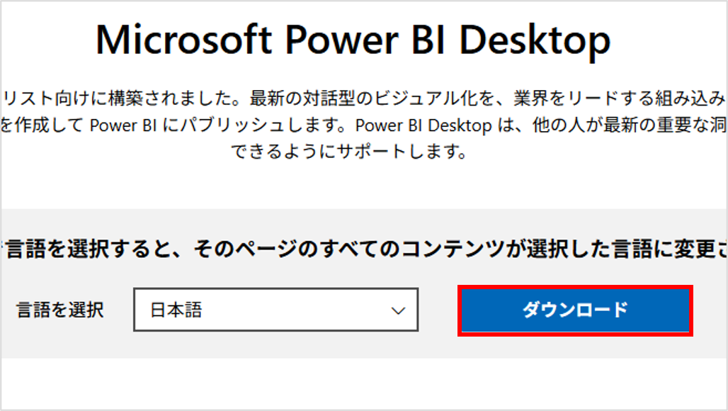 ページ内の「言語を選択」で 「日本語」 を選び、「ダウンロード」 ボタンをクリックします。