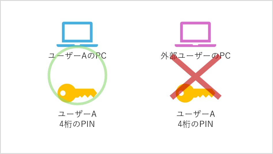 - PIN: そのPC(デバイス)とセットでないと機能しません。
