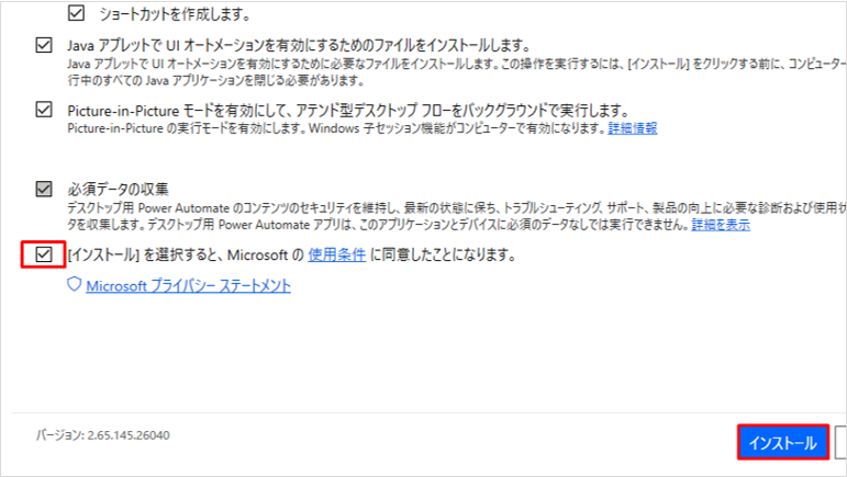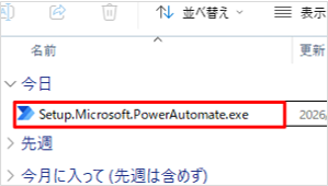 ダウンロードしたファイル(Setup.Microsoft.PowerAutomate.exe)をダブルクリックして実行します。