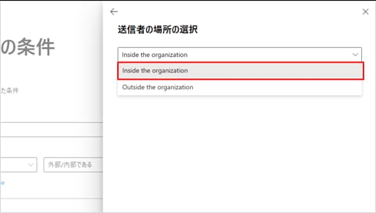 「送信者の場所が...」>「組織内(Inside the organization)」
