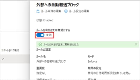 最後に、作成したルールのステータスを 「有効」 に切り替えます。