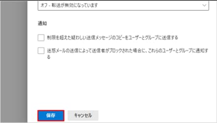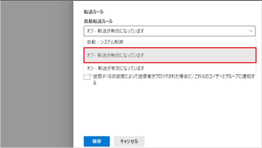 ユーザーのOutlook画面上では、Gmailなどへの転送設定を保存できてしまう場合があります。