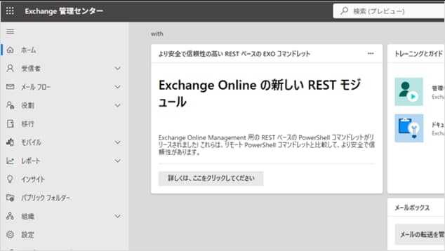 Exchange 管理センター(https://admin.exchange.microsoft.com/)にサインインします。