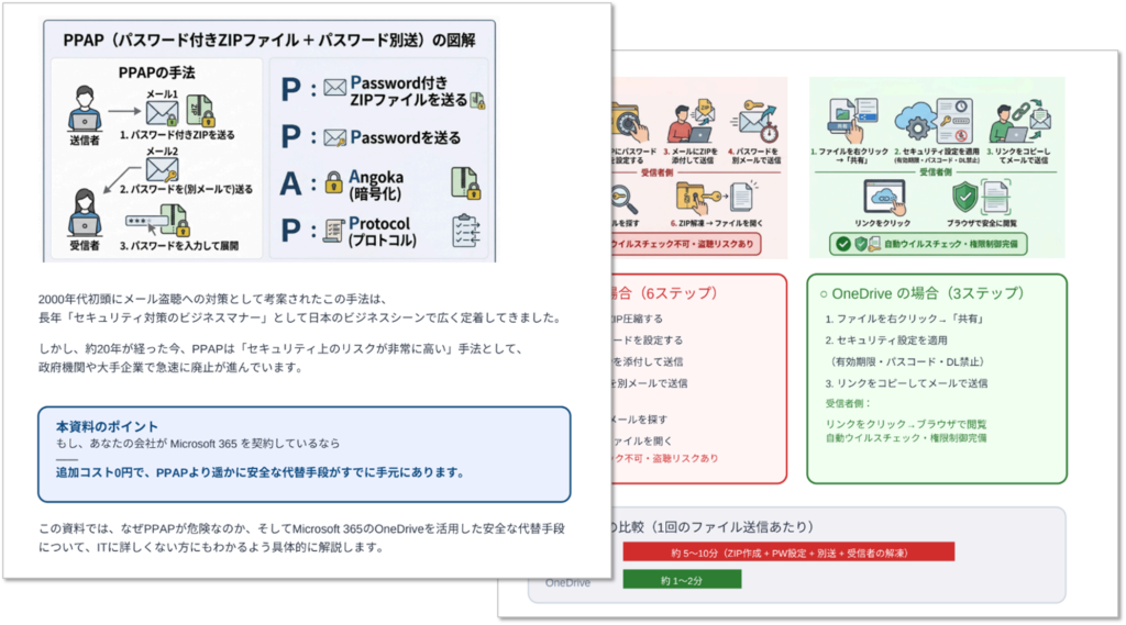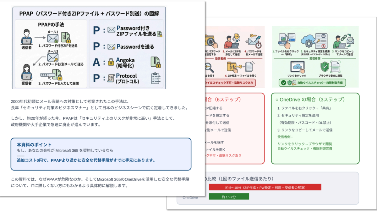 【PPAP対策】Microsoft 365 で実現する 安全なファイル共有 完全ガイドを1冊のPDF資料にまとめました。